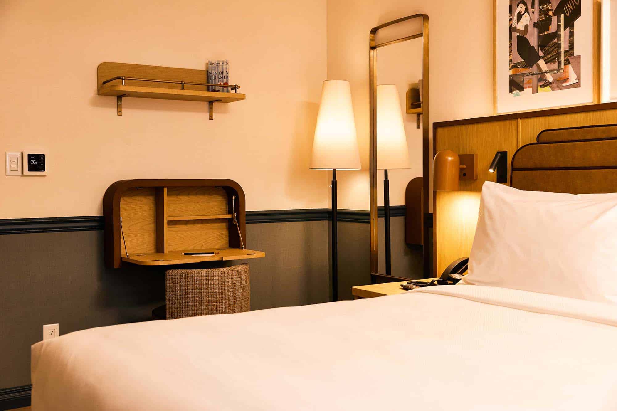 What immediately strikes you about Union Hotel is how much personality is packed into each room. Far from cookie-cutter hotel décor, the guestrooms feature locally sourced bath products by Routine, custom millwork, and art pieces by Toronto artists like Kat Honey, Maliha Ali, and Wang Zi. The design balances modern comfort with subtle nods to the city’s creative energy.